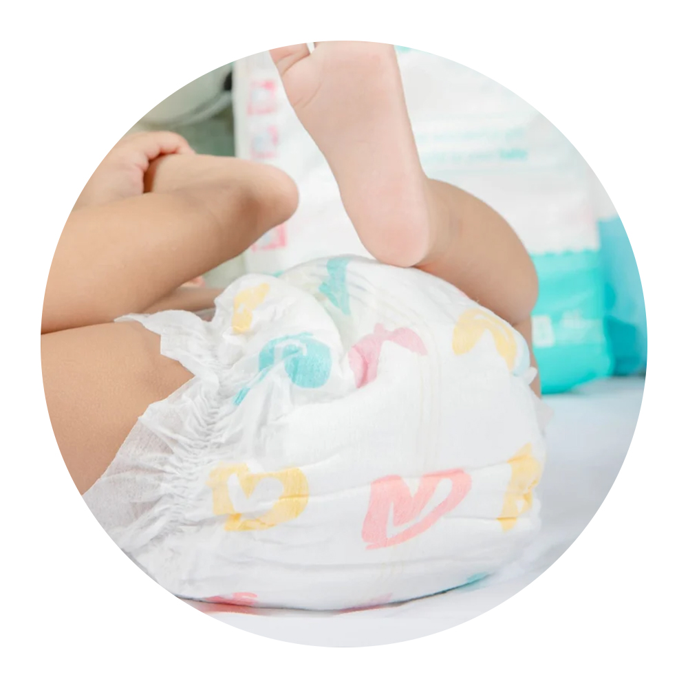 Cover the ultimate comfort and protection with our top-notch baby diapers, thoughtfully designed to keep your baby dry and happy. Featuring a Performance Pearl Surface Layer, these diapers are incredibly soft, while offering the best breathability for maximum airflow. The Super Suction Inner Layer provides excellent absorption, locking in moisture for long-lasting dryness. With 3M Sticky Pads and Smart Sidewalls, these diapers deliver a snug, leak-proof fit that adapts to every movement. The Wide Waist Wraps ensure extra comfort and security, and the Liquid Indicators make diaper changes easy and timely.